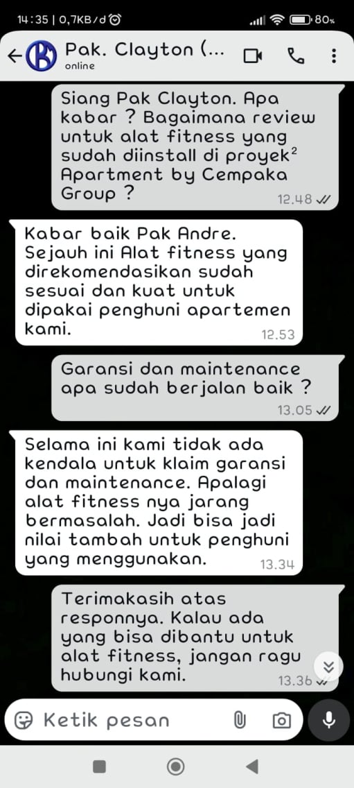 Kami menyediakan konsultasi pribadi untuk solusi terbaik dalam distribusi dan suplai alat fitness rumahan. Dengan memahami kebutuhan Anda, kami memberikan rekomendasi tepat untuk home gym, fitness rumah, dan alat gym rumahan.